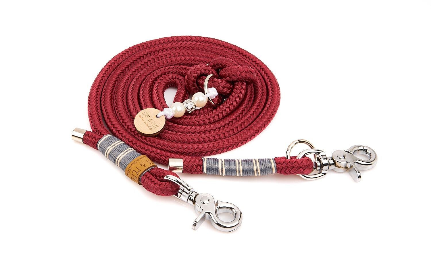 Eine Hundeleine muss nicht nur ein Stück Tau mit Schlaufe sein. Etwas praktisches kann gleichwohl auch etwas stilvolles sein. Die Leinen überzeugen durch schlichte Eleganz einerseits und Robustheit andererseits. Durch eingeknotete Ringe im Tau sind sie dreifach verstellbar und du kannst entscheiden, wieviel Freiraum dein Liebling haben soll. Getreu dem Wau-Effekt findest du an jeder Leine einen kleinen Perlenanhänger, der das Halsbandthema widerspiegelt. Unterschiedliche Hundegrößen haben unterschiedliche Bedürfnisse. Daher unterscheiden sich die Leinen in Tau- und Karabinerstärke damit für jede Hunderasse die optimale Hundeleine entsteht.